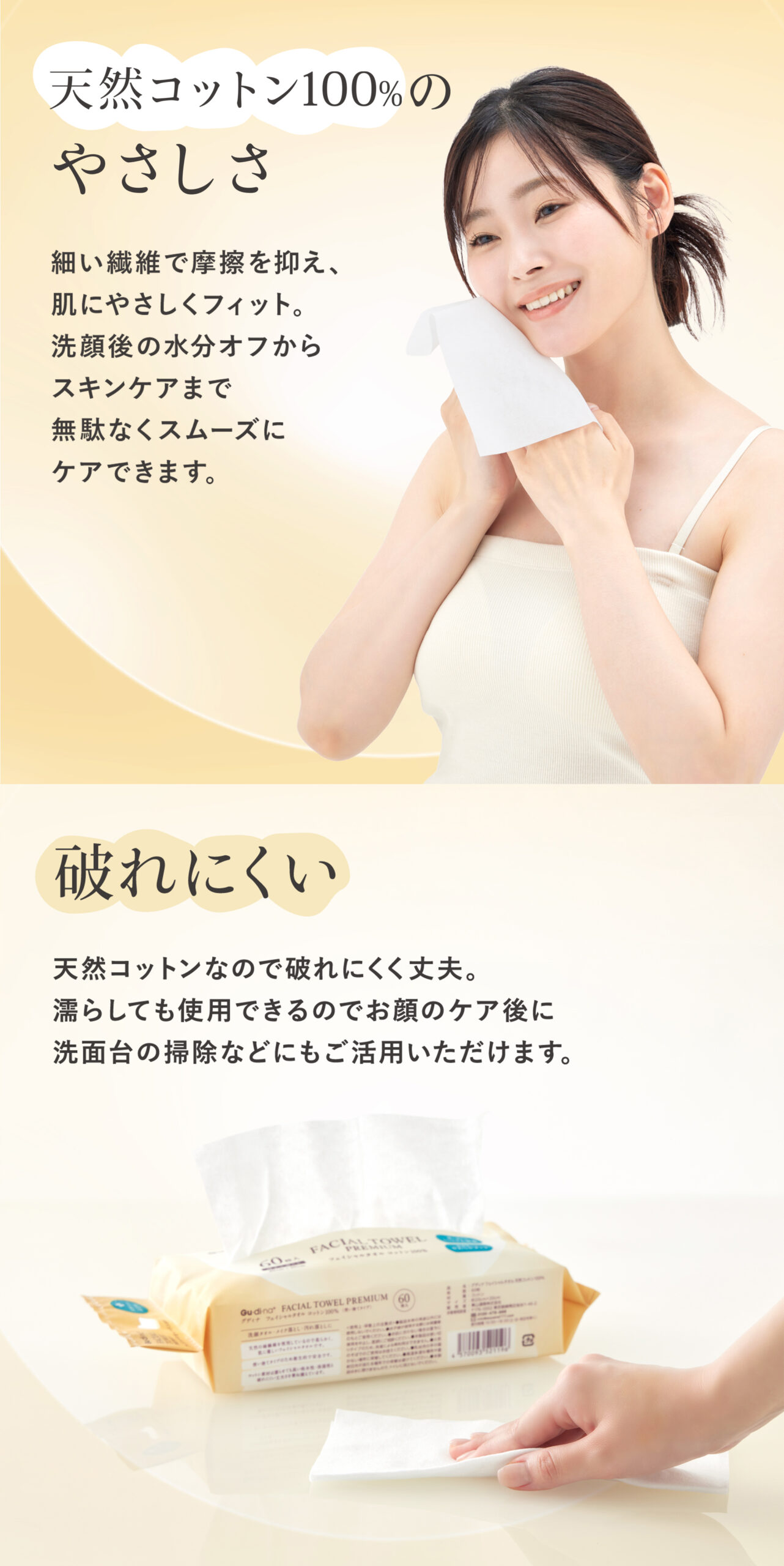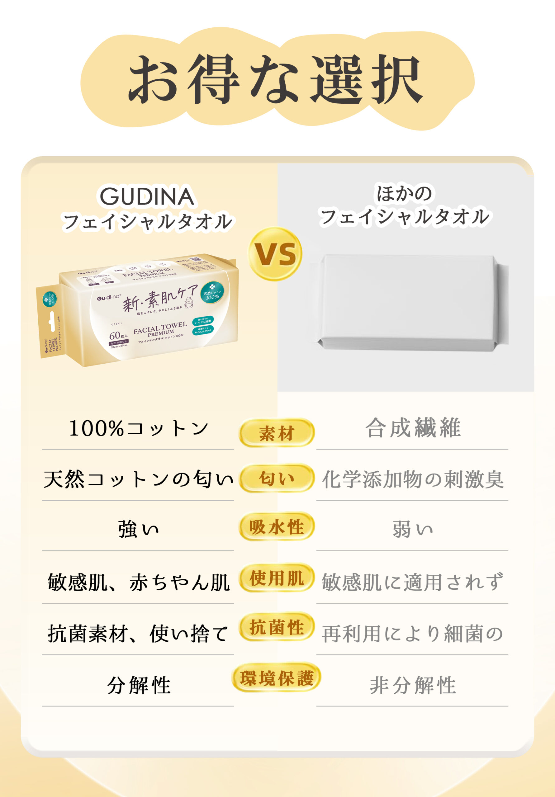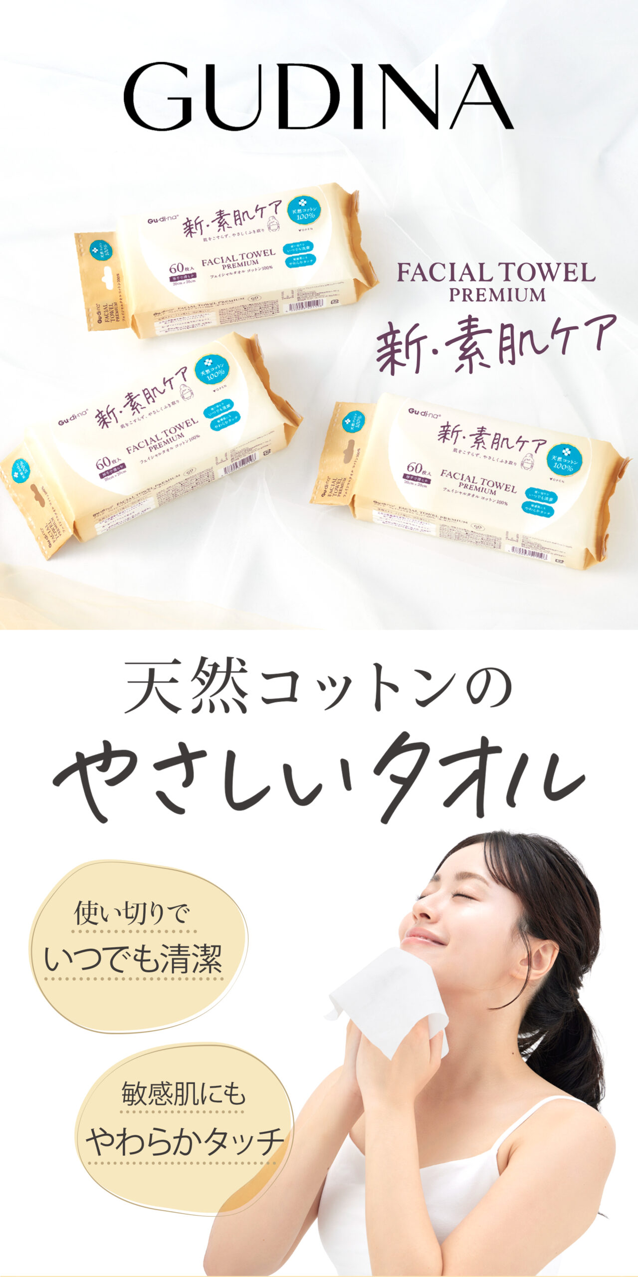 グディナ フェイシャルタオル天然コットン100% 60枚